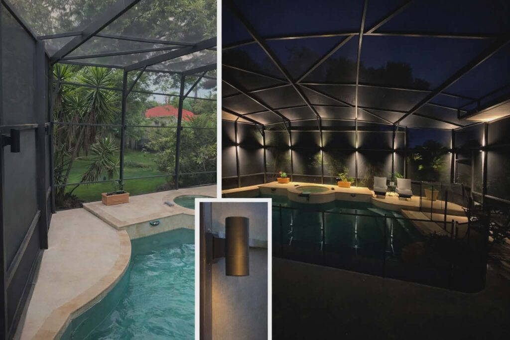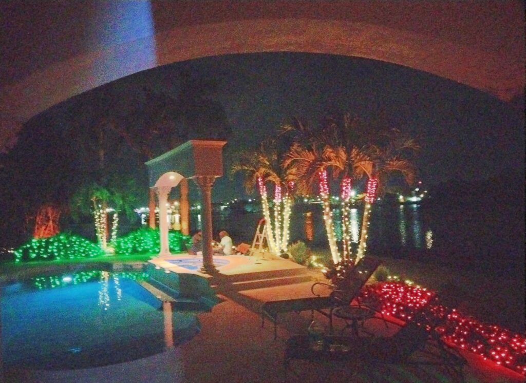 Custom outdoor lighting for yards, trees, pathways, pool cages, docks, and waterfronts properties.